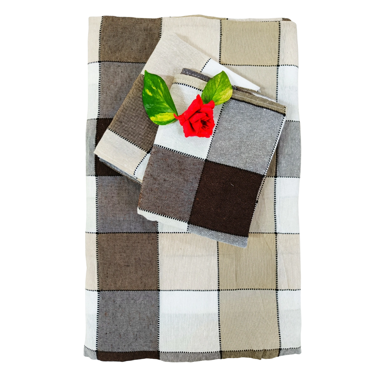 Specification: Elegant brown, beige, peach and white checkboard checkered cotton handloom double bedsheet with two pillow covers