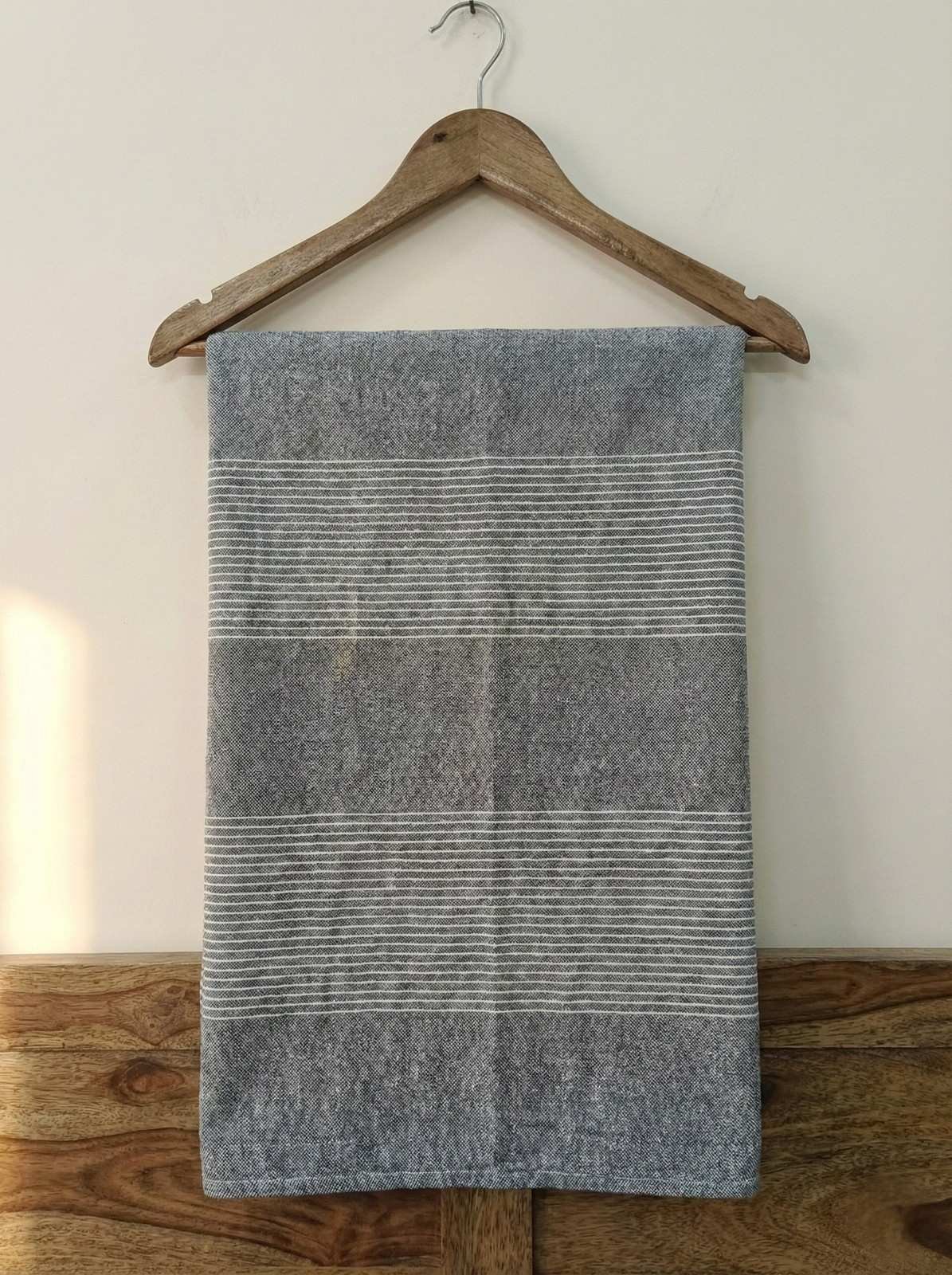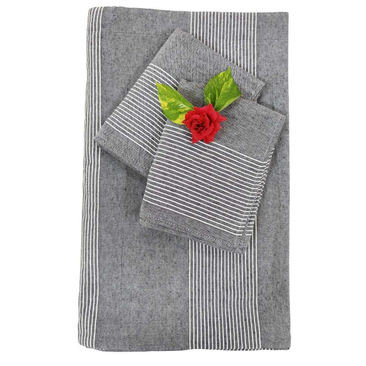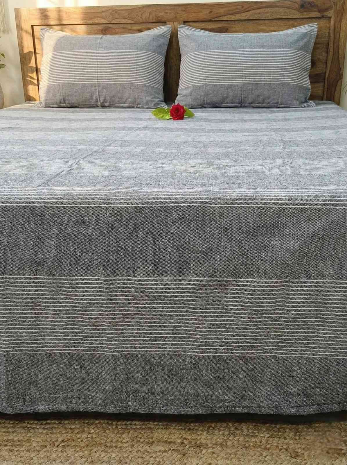 Specification: Elegant grey and white thin stripes on cotton handloom double bedsheet with two pillow covers