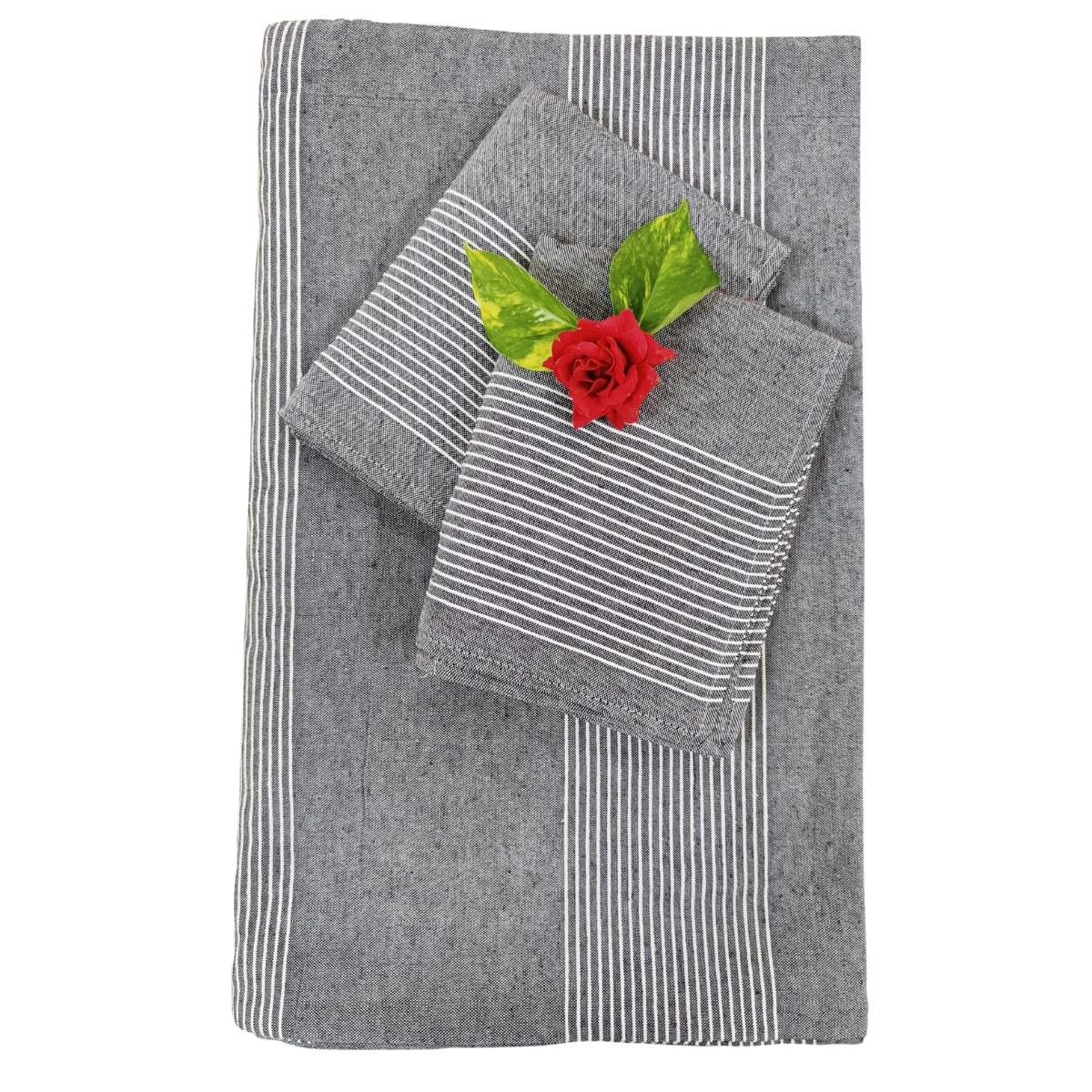 Elegant grey and white thin stripes on cotton handloom double bedsheet with two pillow covers