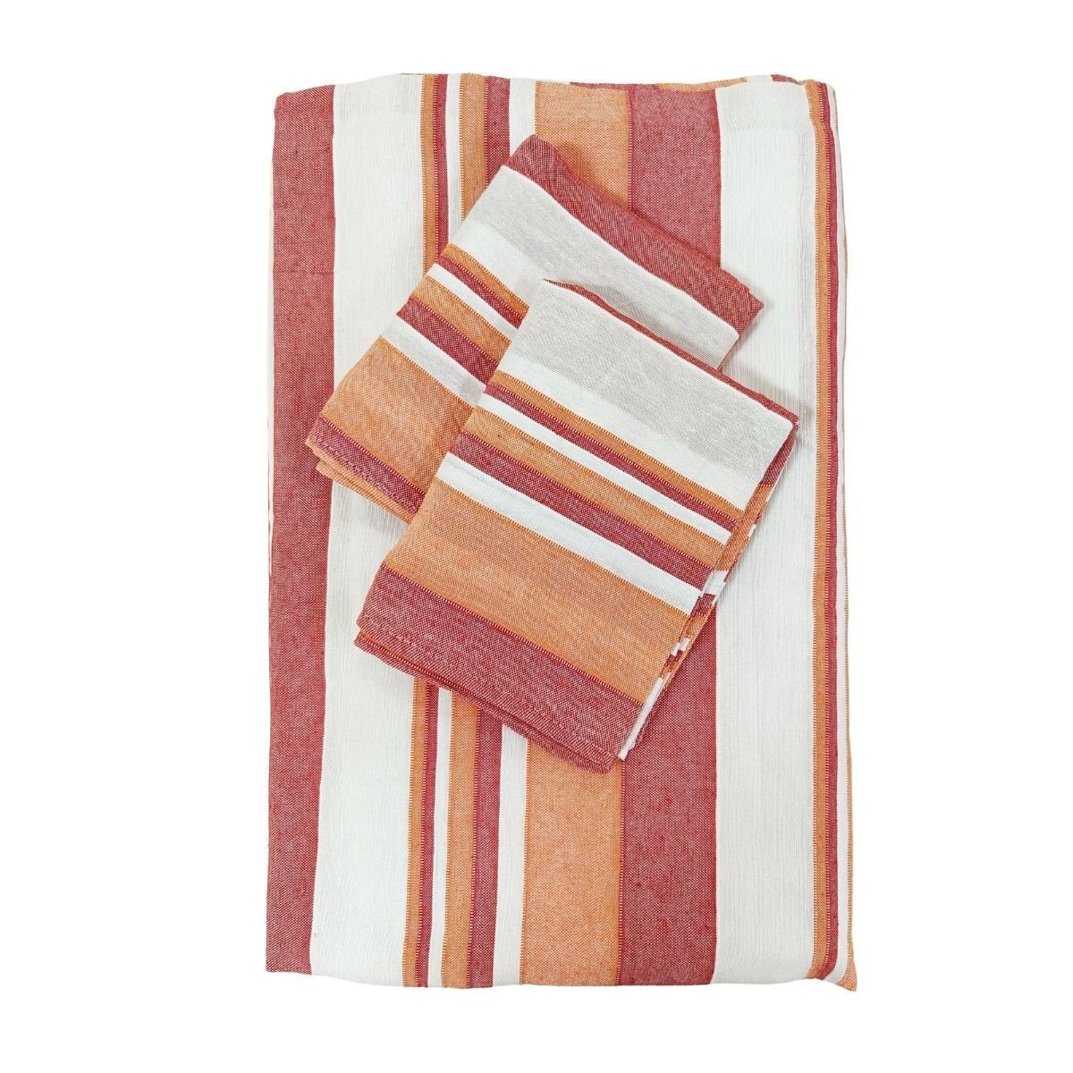 Specification: Elegant striped design in orange, red and white on cotton handloom double bedsheet with two pillow covers