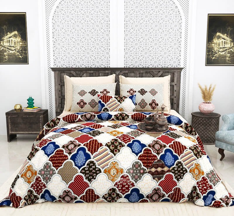 Specification: Exquisite design in brown, white and maroon premium cotton double bedsheet with two pillow covers