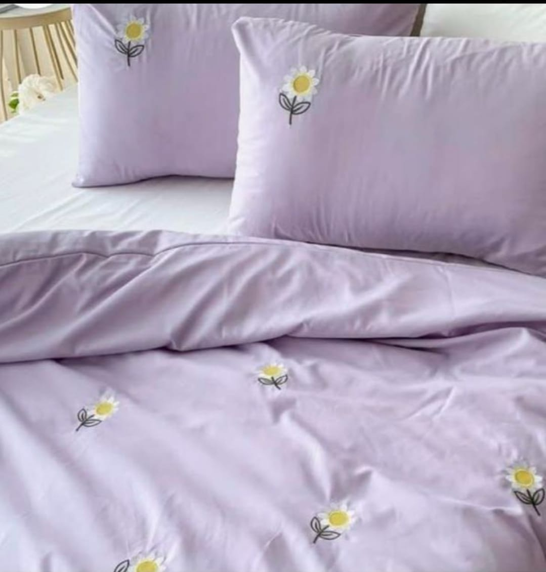 Specification: Exquisite embroidered cotton bedsheet with white daisy floral pattern on lavender in premium cotton bedsheet along with two pillow covers