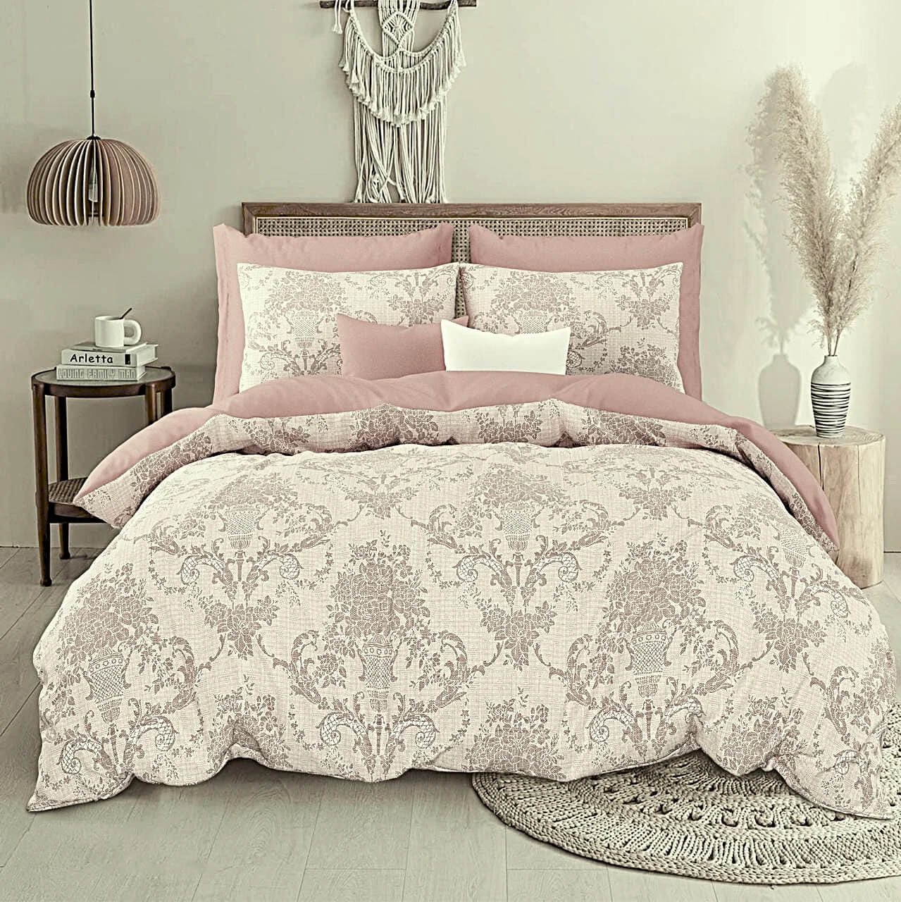Exquisite floral print in beige on double bedsheet and two pillow covers