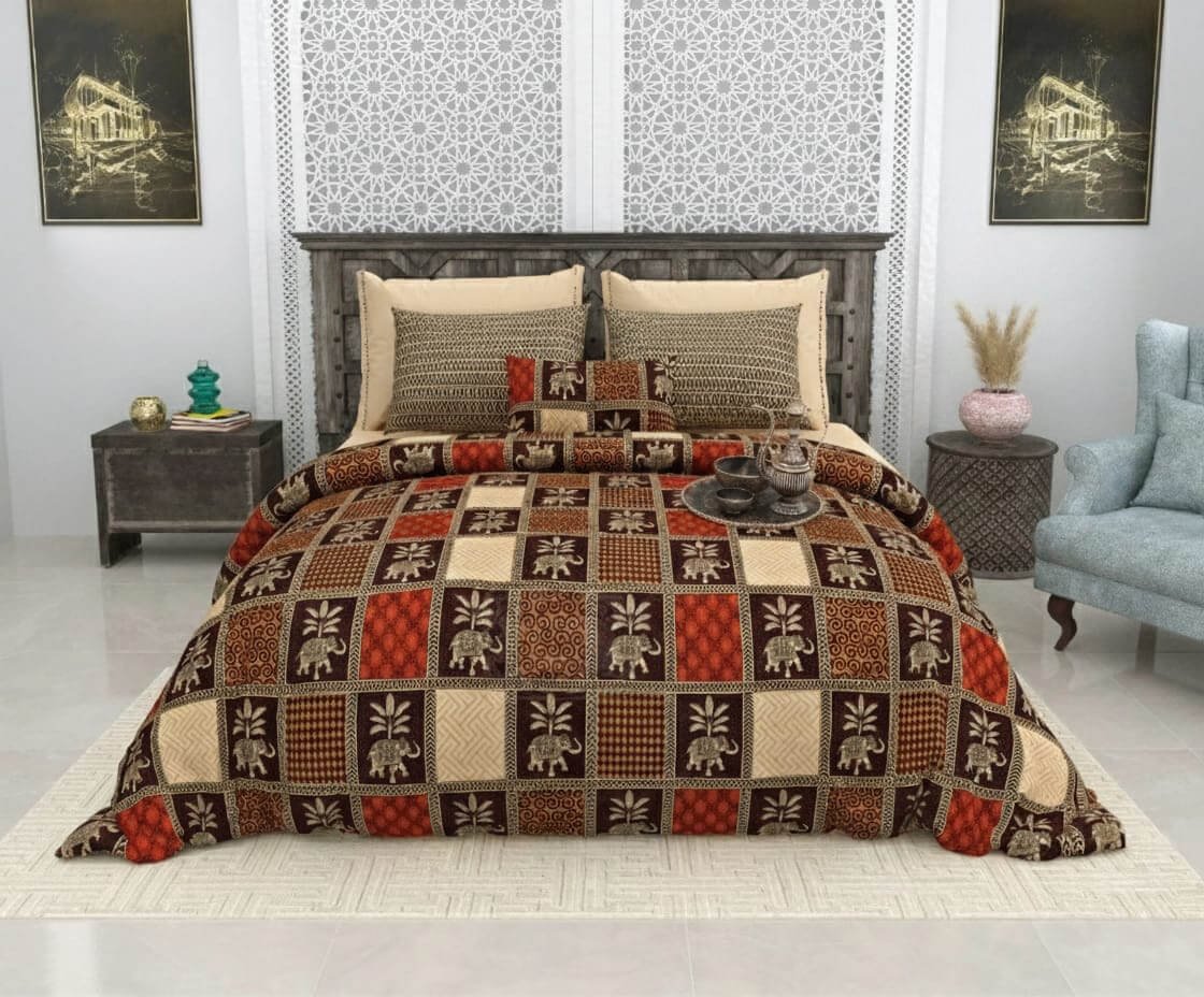Specification: Exquisite bagru print in brown and cream premium cotton double bedsheet and two pillow covers