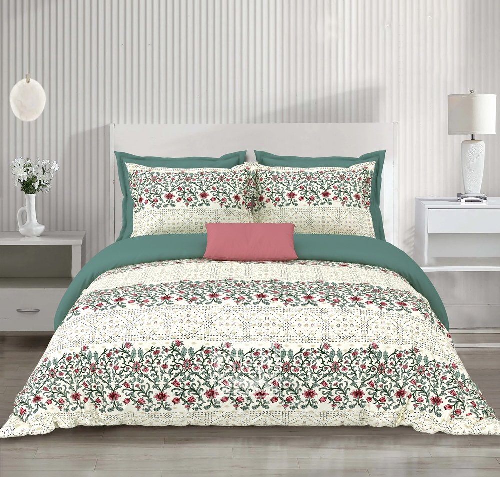 Specification: Exquisite floral print in maroon and green on cream cotton double bedsheet with two pillow covers