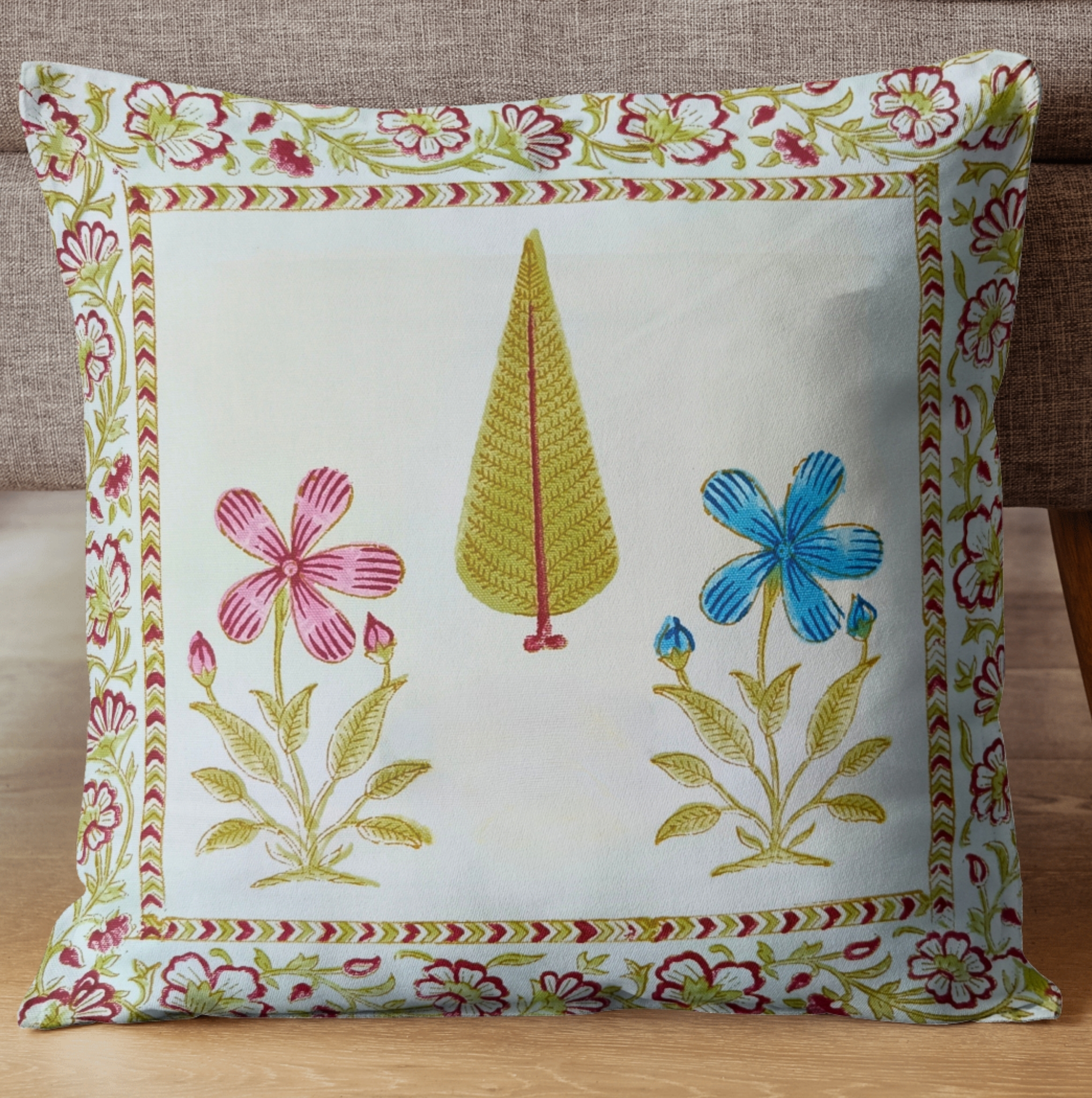 Specification: Exquisite handblock on canvas cotton cushion cover set of 5 cushions in blue, pink, green and white