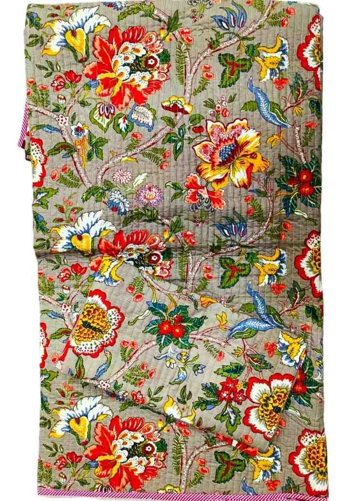Specification: Exquisite in orange on grey quilted, reversible bedcover and two quilted pillow covers