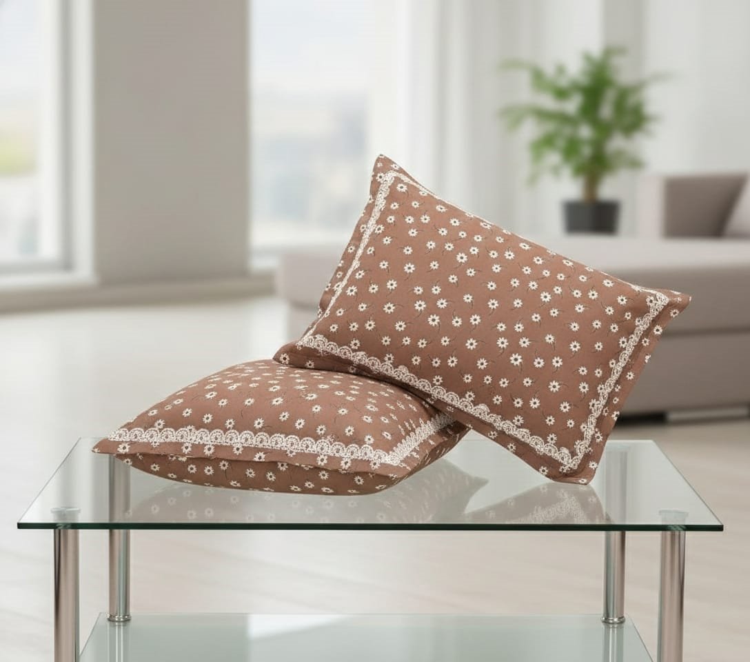 Specification: Exquisite print in brown and cream premium twill cotton double bedsheet with two pillow covers