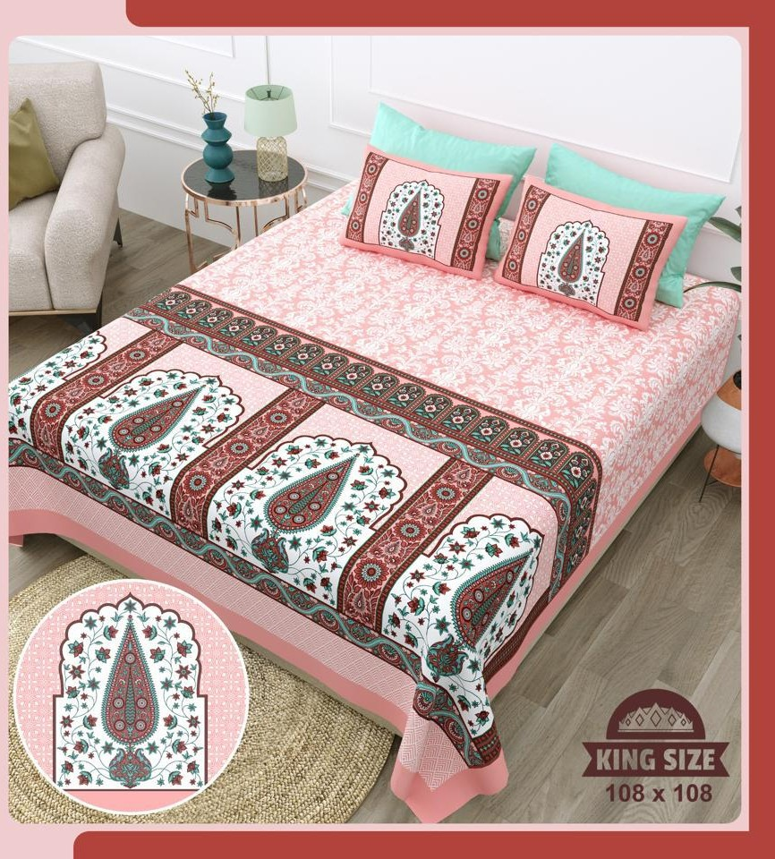 Specification: Exquisite print in pink and brown pure cotton double bedsheet and two pillow covers