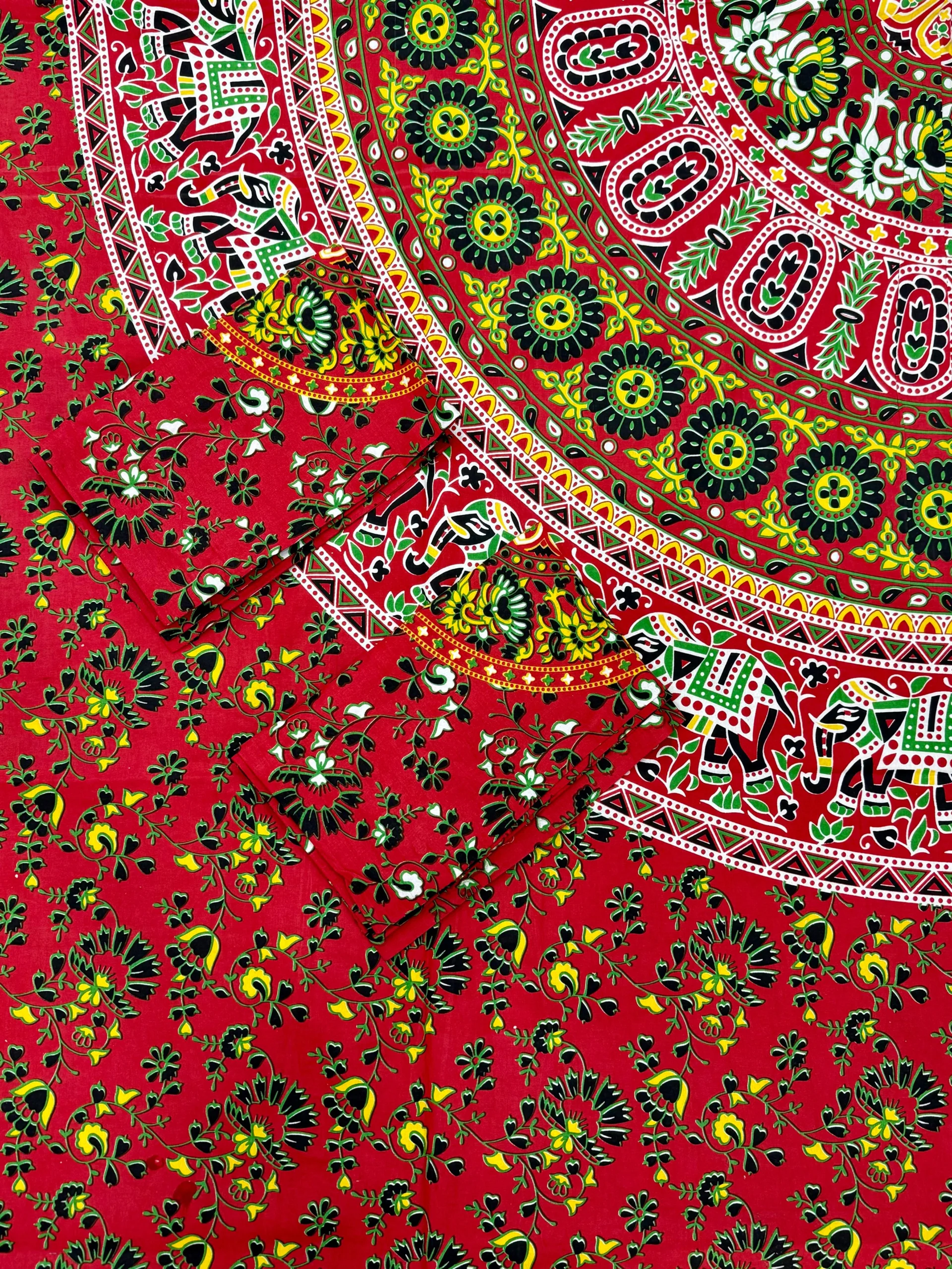 Specification: Mandala circular print red double bedsheet and two pillow covers